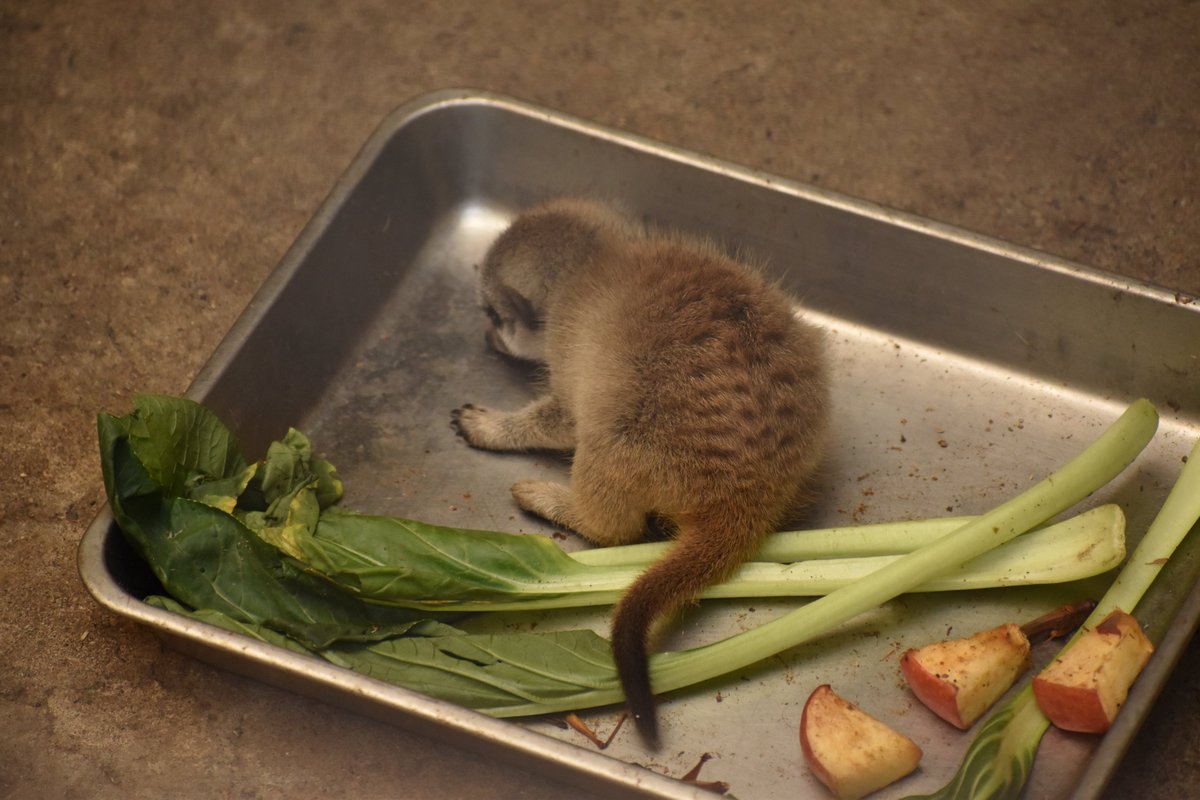 えさバットの上ですやすや ミーアキャットの赤ちゃんがかわいい ライブドアニュース